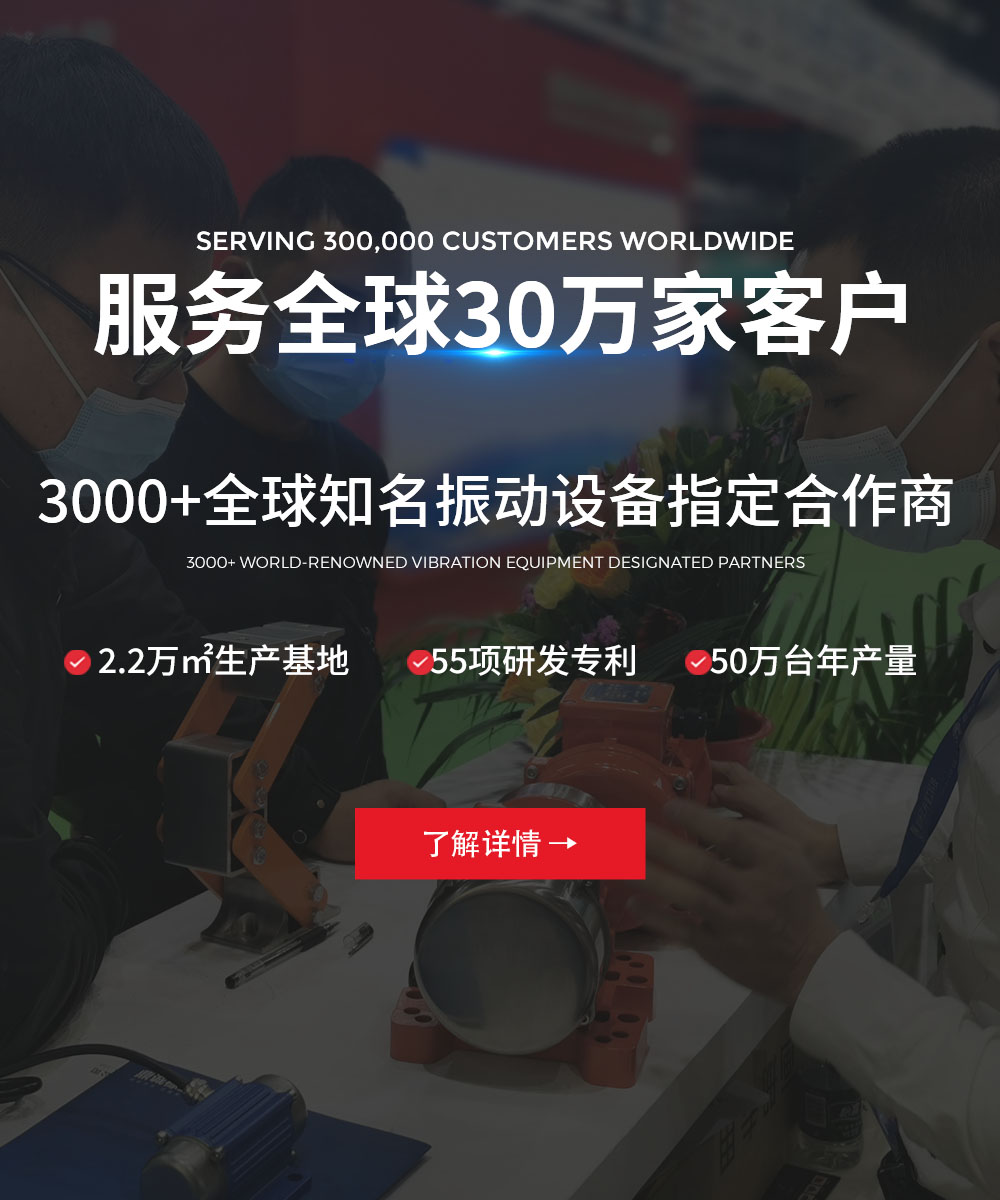 01 30年行業(yè)沉淀 · 實力廠家 振動電機設(shè)備贏領(lǐng)者